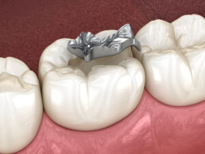 治療中の薬の臭いではなく、昔入れた「銀歯」や「レジン(プラスチック)」の詰め物から嫌な臭いがしてくる場合は、別の原因が考えられます。それは、詰め物の下で虫歯が再発する「二次カリエス」です。