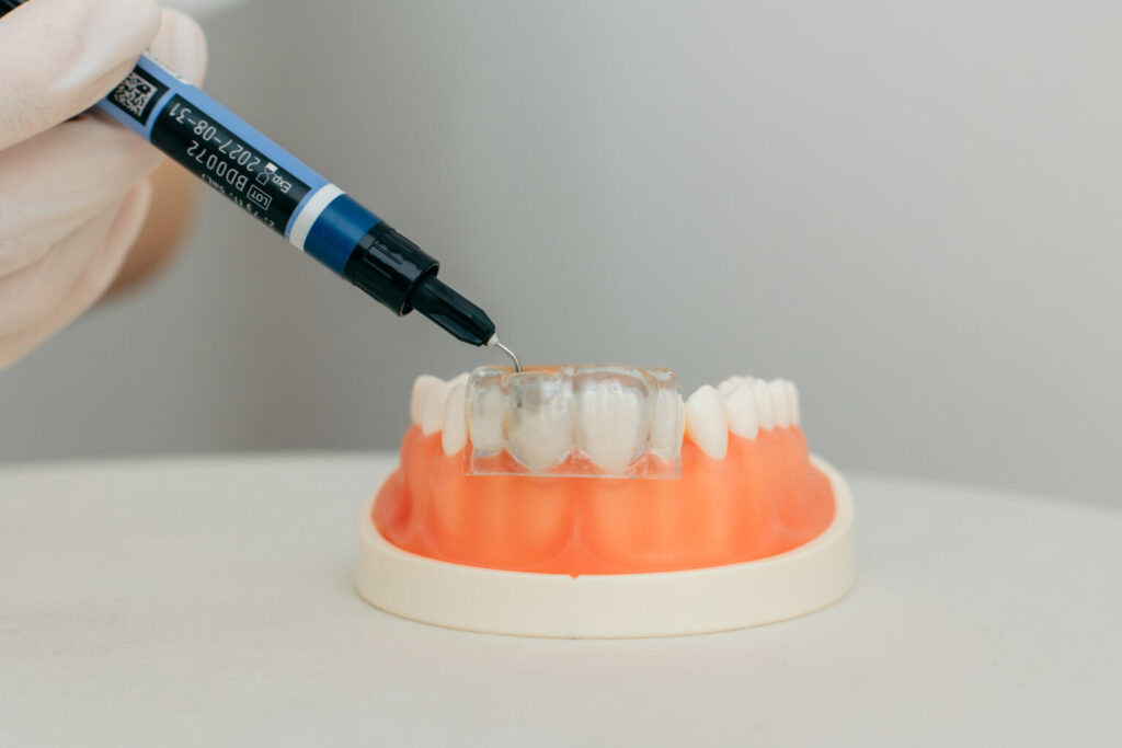 インデックスを使ってコンポジットレジンを流し込み、短時間で精度の高い歯の修復を行います。
